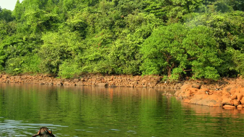 Serene backwaters of Mulshi Dam creating a peaceful environment.